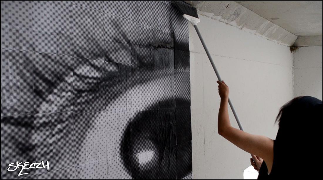Heritage: Ha ha yeah, can’t forget that. Monsterpaste is essentially weapons-grade wheatpaste. I was tired of my wheatpaste getting pressure-washed, so I cut some of my art time out and studied some chemistry and physics, and created a wheatpaste that resists all forms of removal. Pressure washers, steam, sandblasters, everything. The easiest way to remove it is to buy a new wall.