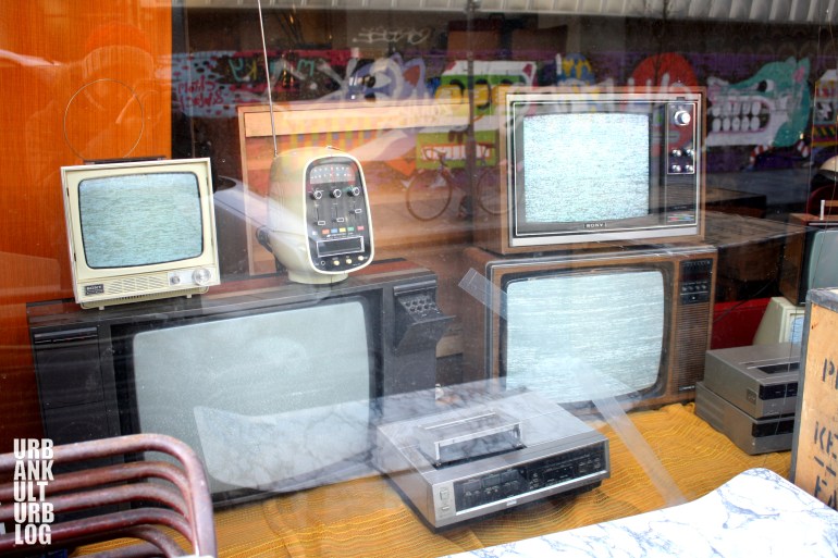 Mural reflected in the white noise of late 70s television sets!