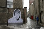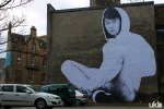 The largest of these (so far) appeared last Saturday. At an impressive 40ft, this piece dominates the Cowgate area of Edinburgh. Building upon last year’s Inside Out project he worked on alongisde JR, hopefully this is the start of larger scale projects like this becoming a regular feature on the landscape.