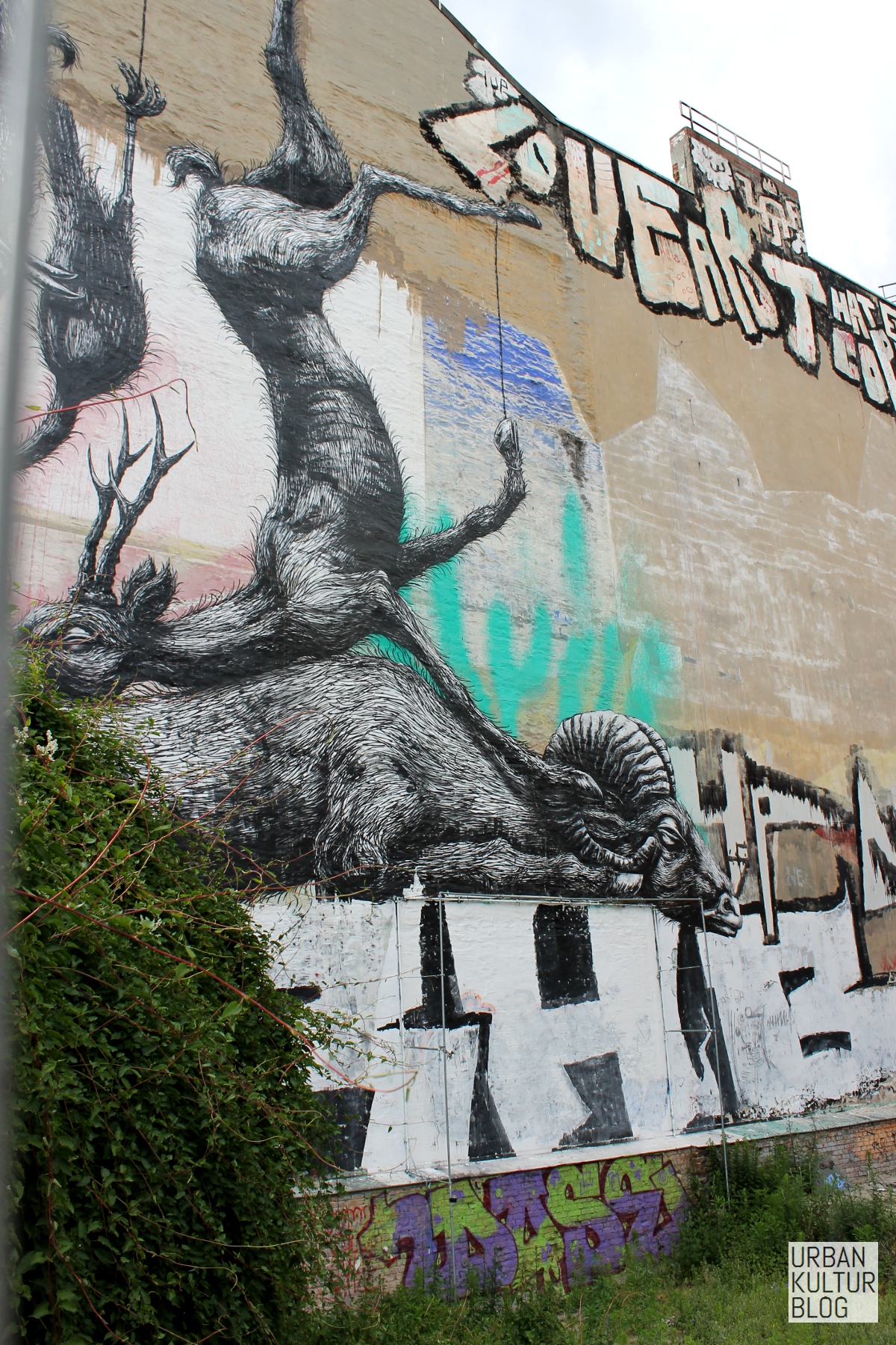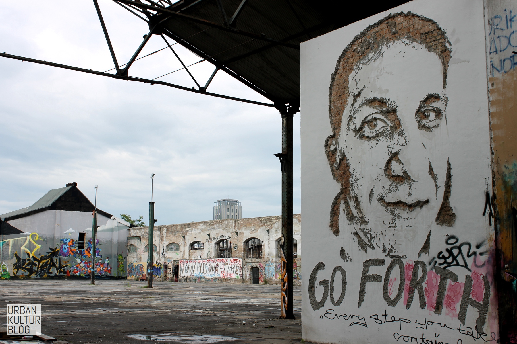 Third instalment of photos from Berlin, this time featuring Vhils, Jimmy C with more of his distinctive portraits, the first mural by American due JBAK (James Bullough & Karl Addison), Robi the dog, MTO‘s portrait of Berlin legend Alias and the unmistakeable Roa. UKB