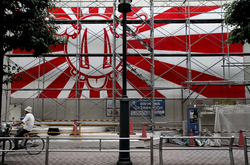 The UK based artist D*Face has been spotted in the east this week, and not east London. He’s creating this latest piece in the Shibuya district of Japan’s capital, Tokyo. Nice Japanese take on the D*Face character, looking forward to see if any more work pops up while he’s over there! UKB
