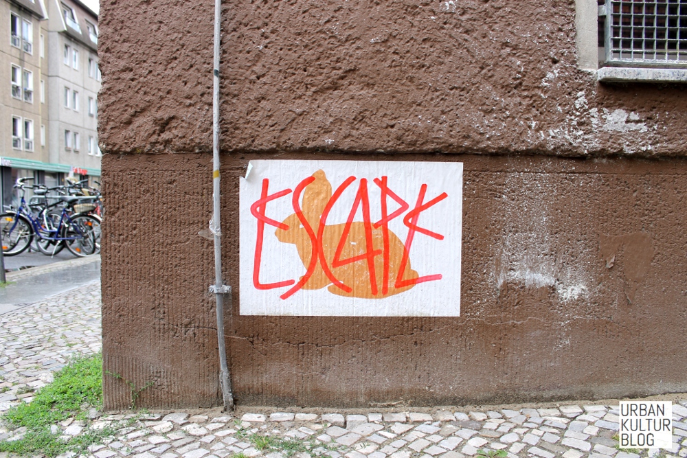 Hey, I saw that “ESCAPE” piece in several places around Berlin when I was there in January 2011. Don’t know the artist personally though. Here’s a link to a photo of one I saw: http://www.flickr.com/photos/lancephoto/5310019565/