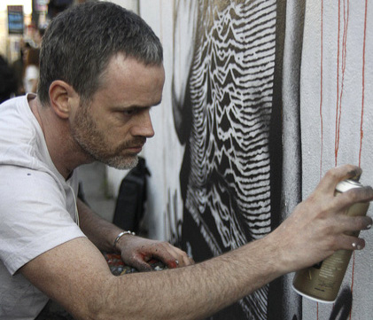 In a relatively short, but exceptionally busy, urban art career, Fin DAC has defined and perfected an atypical paint/stencil style that ignores the accepted visual language of street art almost completely – he calls it Urban Aesthetics (a modern-day take on a 19th century art movement).