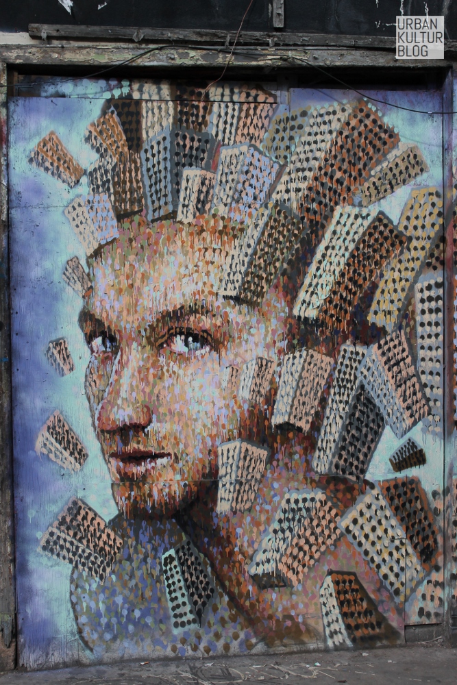 Another new piece from the recent UKB trip to London for Moniker Art Fair. This time from James Cochran, aka Jimmy C, with his distinctive spotty technique to compose his great portraits. UKB