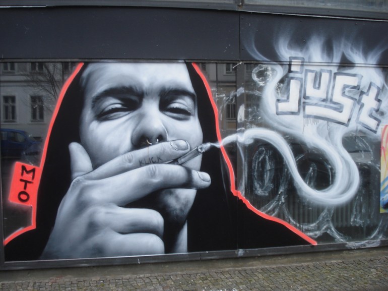 I first discovered MTO’s work while taking a tour in the depths of winter with the good people at Alternative Berlin a few years ago I can’t remember if it was the turntables or Jack Nicholson piece on Oranienstr., but the greyscale portraits with trademark red outlines (will come back to this later) really stuck in my mind.