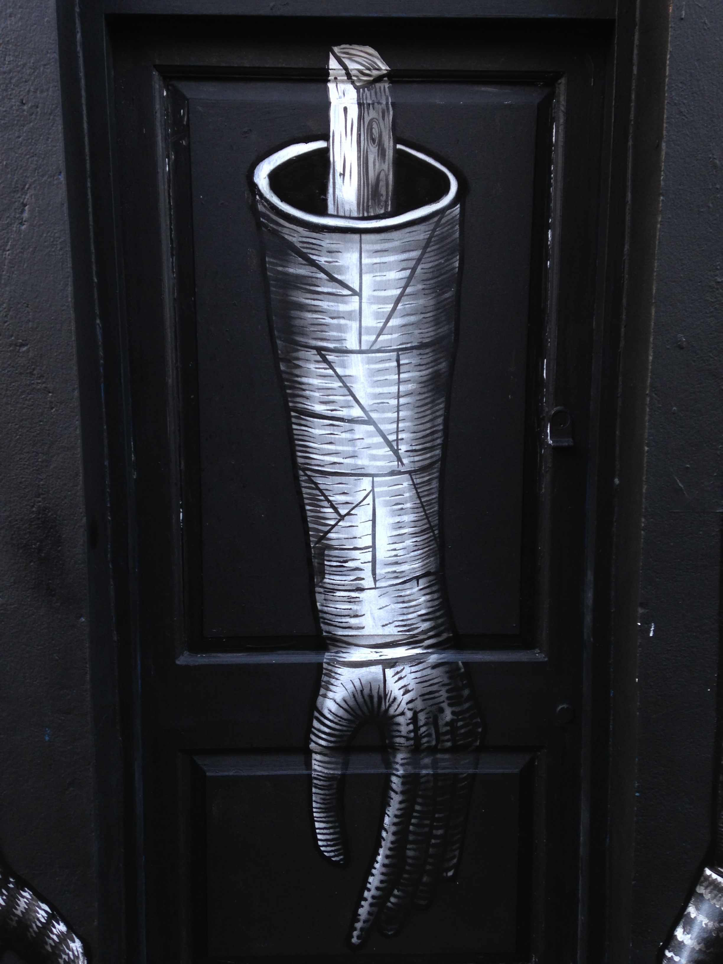 Behind this shutter lies work from Borondo, a window painted white and scratched away to create a really impressive effect. Take a look at Borondo’s work from this post earlier in the year.