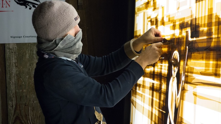 With a surgeon’s scalpel as his brush, he intricately cuts the tape and attaches it to acrylic glass to make use of its semi transparency, casting light from behind to create some really mesmerising work.