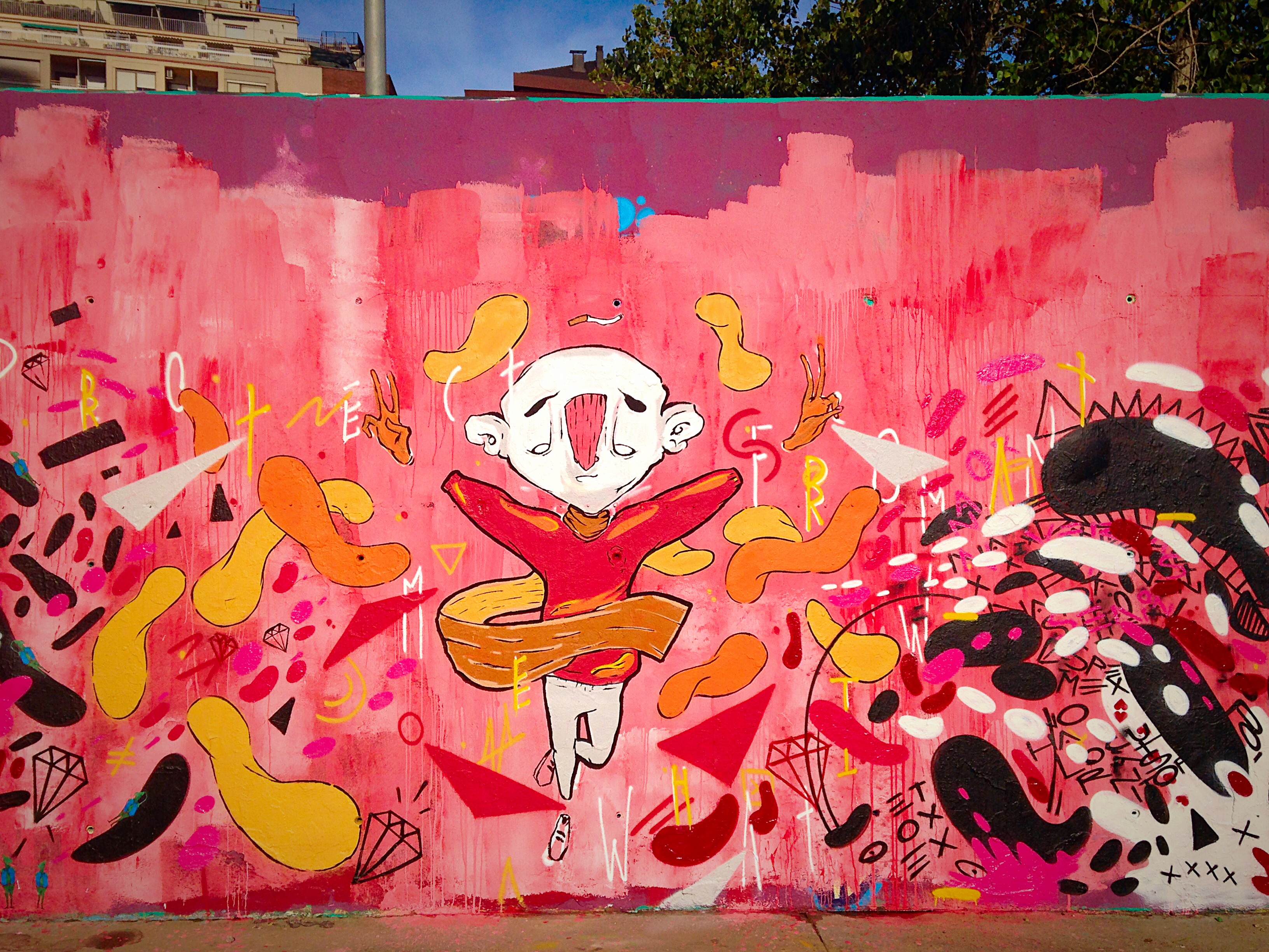Around the Plaça d’Espanya and onto Avinguda del Paral·lel, I caught a piece from Kram posted on a doorway. This illustrated poster is really popular throughout Barcelona with Ozzy another artists excelling in this medium. Kram is definitely one to keep an eye on. Some of his larger scale work is stunning too. I’ve included it here, as although I didn’t see it in person, it’s too good not to share…