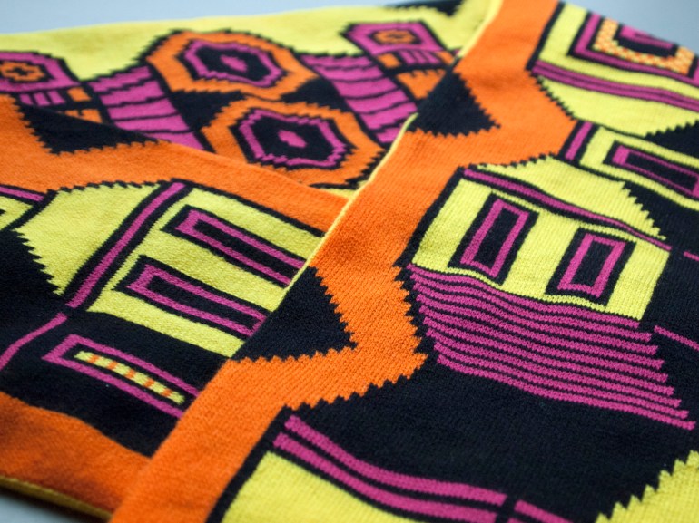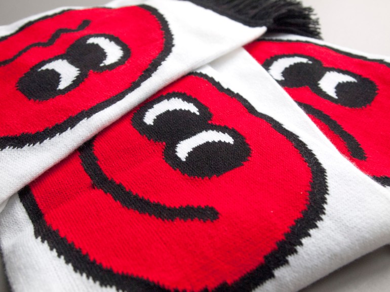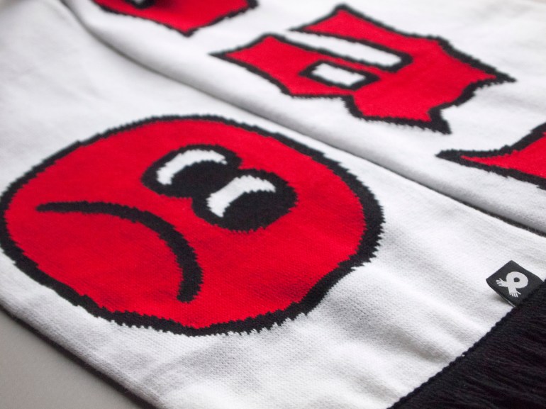 In true LEO style – Ladrillo’s minimal, modernist designs work perfectly with the football scarf ‘canvas’, almost to the point where you begin wondering if there’s a football team out there that has a smiling and frowning face as part of its badge!